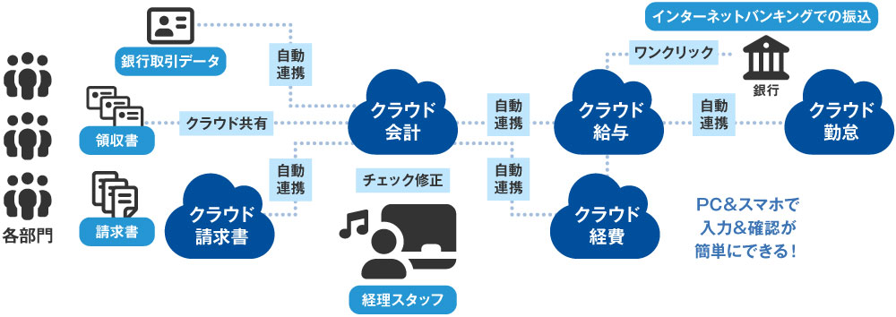 給与・経費・請求・支払等、クラウドソフトの導入を行います